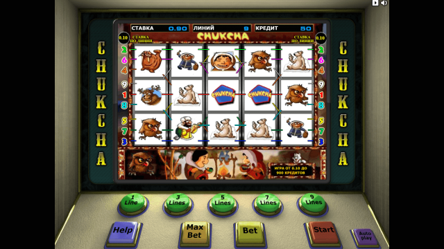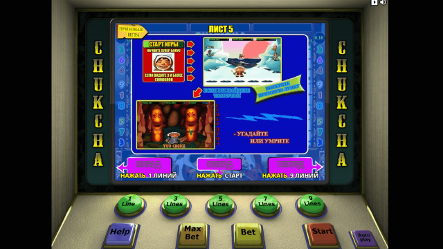 Игровой аппарат Chukchi Man отличается оригинальным сюжетом и расширенным набором бонусных опций. В слоте есть несколько спецсимволов, 2 бонус-игры и рисковый раунд. Джекпот автомата составляет 125 000 монет.
