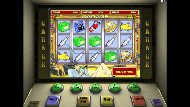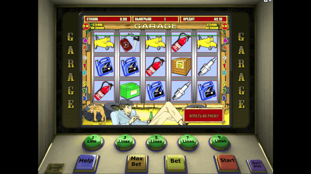 Garage (Гараж) — 5-барабанный онлайн-автомат, на игровом поле которого одновременно отображается 15 картинок. Изображения расположены по сетке 5х3. Количество активных полос регулируется пользователями. Можно выбрать 1, 3, 5, 7 или 9 линий выплат.